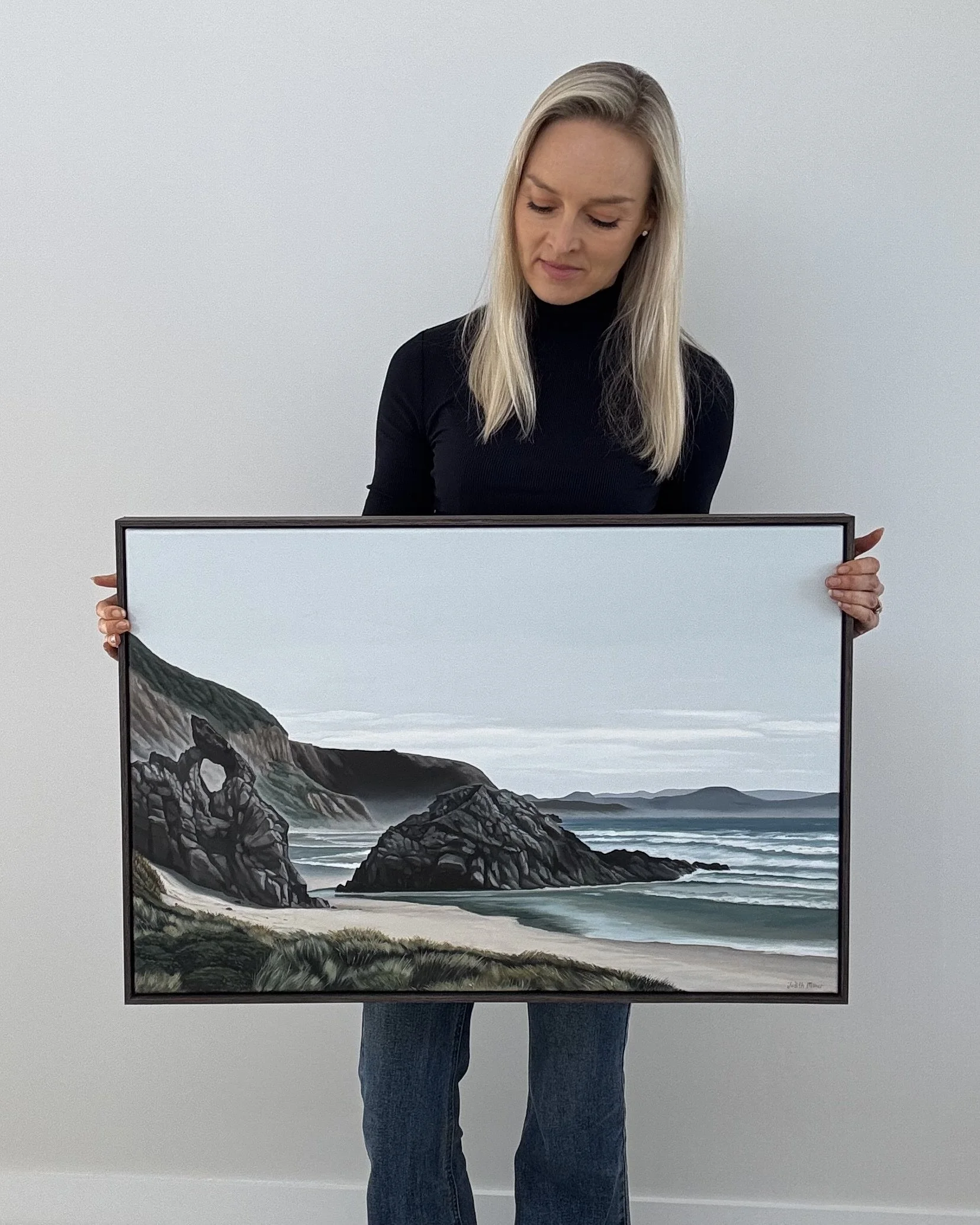 I am delighted to be included in this group exhibition featuring a wide range of artist's celebrating The Artist Room Gallery's 21st Anniversary. My piece, The Keyhole, Aramoana, was inspired by a drive along the Otago Peninsula while visiting Dunedin last year. I was struck by the imposing silhouette of the Keyhole rock formation against the gentle sea mist and soft white sand of this pristine beach.