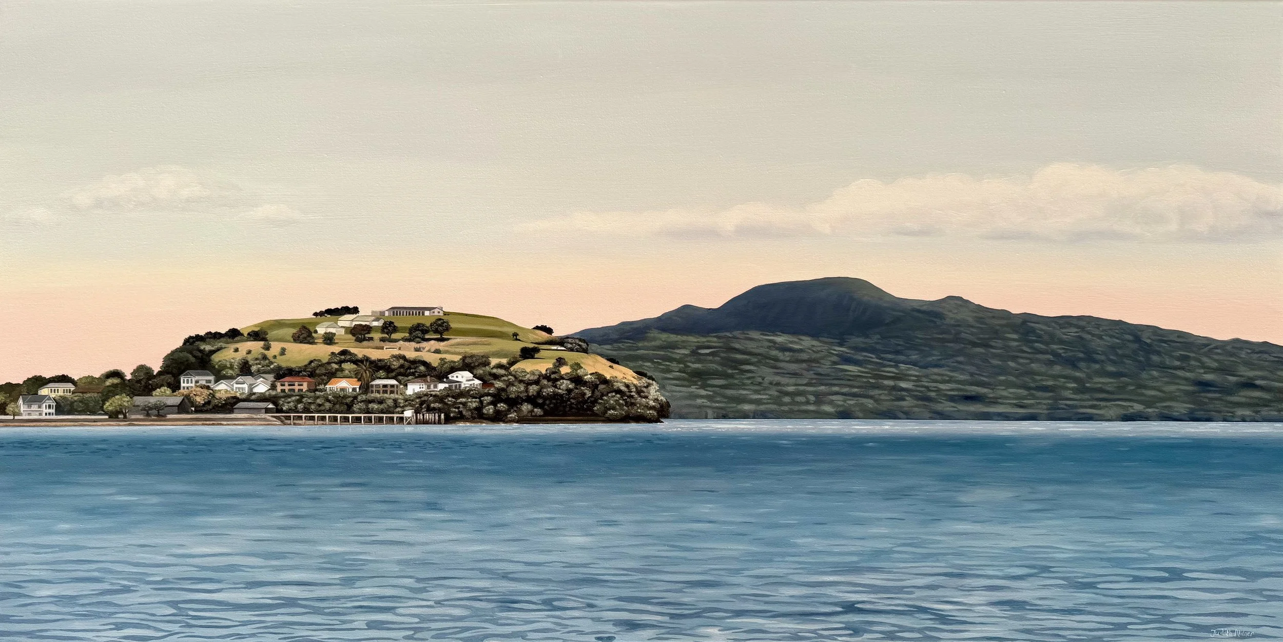 This vista was inspired as I walked along Tāmaki Drive one morning and my eye was drawn to the contrast between the gentle contour of North Head and Rangitoto’s imposing presence. I have always been fascinated by the volcanoes that make Auckland’s geographical landscape unique. They are a constant in a city that is otherwise rapidly changing. I was stopped in my tracks by the way these two symbols of Tāmaki Makaurau overlap from this perspectiv.